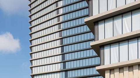 A closed-cavity façade is a variation on the twin-wall façade, but with a completely closed chamber between the inner and outer skins. Due to its double-skin configuration, this special façade construction provides excellent sound reduction. This can be achieved without the use of special sound reduction glass, which isn't the case for other façade constructions. Cooling loads and operating costs can be reduced by means of the protected sun shading that is integrated into the cavity. This internal sun shading and the space between the façade skins is completely closed off to dirt from both the outside and inside, and therefore does not require cleaning. In addition, the closed-cavity façade features excellent energy efficiency, which is also thanks to the closed space between the façade skins. The closed cavity façade of the ToHa Tower is therefore the response to the challenges posed by an Israeli major city, where the buildings are constantly subjected to heat, noise pollution and fine sand dust particles.