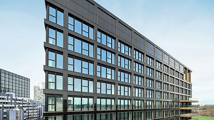 The architects also came forward to positively praise the support from Schüco. "The company acted not only as the system supplier, but also stood by us as a partner for the project-specific implementation of the façade," recaps Nicolas Schrabeck. "We have utilised the option to adjust the shade of the PV units individually to design the façade in a monochromatic, almost black shade. The bronze-coloured edging of the windows forms a subtle contrast to this." As a result, the glass shell, which is otherwise characterised by windows and PV elements, has gained a pleasant and high-quality rhythm. Distracting reflections, e.g. the reflection of sunlight, are prevented. This clearly demonstrates that a design-orientated façade and the use of BIPV are by no means mutually exclusive.