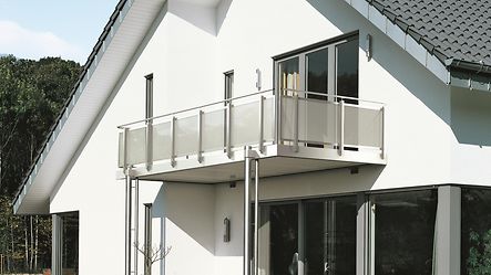 - Direkler ve tırabzanlar, Schüco balkonlarının yuvarlak boru ve kare destekleriyle uyumludur