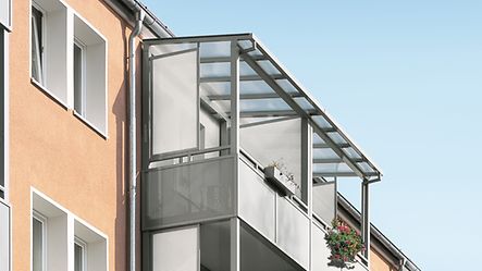 So kommen Sie trocken durch alle Jahreszeiten – Schüco Balkondächer sind universell nachrüstbar.