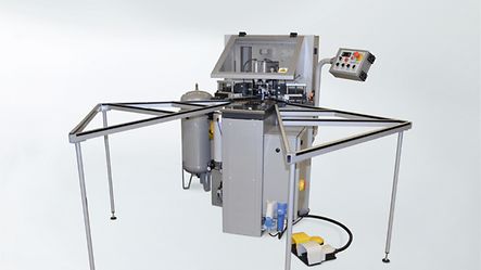 Mitre sealing machine for applying the mitre sealing compound (Art. No. 298 864) to aluminium mitre surfaces.