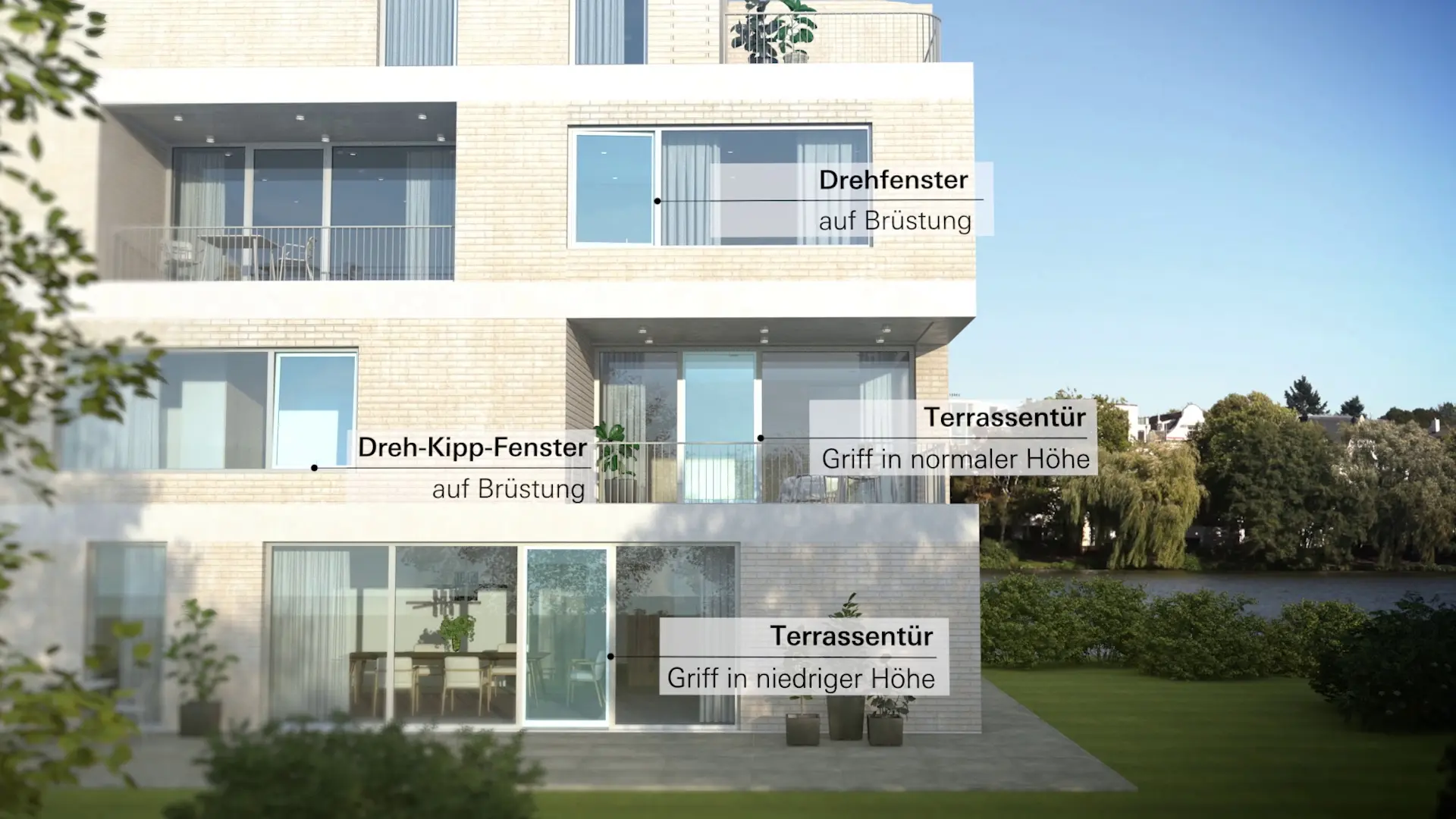 Les composants de confort sans obstacle peuvent être installés dans des fenêtres d'une profondeur de 70, 75 et 90 mm et permettent de régler librement les forces de commande et donc de respecter les forces de commande autorisées pour l'accessibilité selon DIN 18040-2.