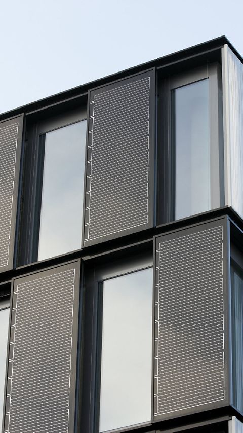 La directive européenne sur les bâtiments en vigueur depuis 2021 exige un bilan énergétique largement équilibré (nearly zero energy) pour les nouveaux bâtiments. Schüco offre les solutions adaptées avec sa combinaison d’enveloppes de bâtiment à isolation thermique élevée et son système photovoltaïque intégré au bâtiment (BIPV). Les modules BIPV sont donc non seulement un signe visible de la protection de l’environnement et de la durabilité, mais aussi un élément important dans la réalisation de bâtiments à consommation d’énergie faible, nulle et à bilan énergétique positif. Le photovoltaïque intégré au bâtiment prend en charge une multitude de fonctions d’autres matériaux et d’éléments de construction telles que la protection contre les intempéries, le soleil, les regards indiscrets et l’effraction, ainsi que la protection anti-incendie et l’isolation thermique et la protection acoustique, tout en augmentant le bilan énergétique du bâtiment en générant de l’électricité.