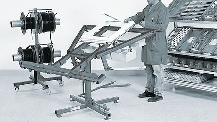 用于临时移动存放外框。用滚轮轻松推动外框。使用手动刹车将外框固定在输送车上。