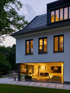 业主Erika Werres和建筑师追求独特设计,为改造一栋家庭住宅实施了综合方案。她为不同旭格窗系统精挑细选型材表面喷涂方式,对住宅内部和四周所有外露表面设计色彩并适配材料。最终呈现出连贯又雅致的风格。