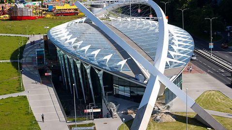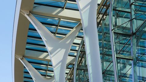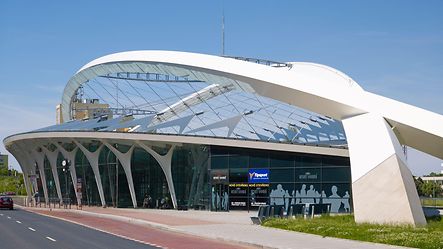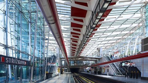 The Strizkov station, designed by Patrik Kotas, Atelier designu a architektury, is one of the new stations of the constantly growing Prague Metro network. The completely glazed building is pleasing because of its aesthetic structure and the technical implementation. Above the hall structure (160 m x 42 m), the roof construction was hung on the main vault using two different arched rod systems. The first system, with short bars performs the static function, while the second system with long rods incorporates special springs to reduce tension in the supporting structure. The façade was executed utilizing the highly insulated FW 50+.HI mullion-transom façade from Schüco.