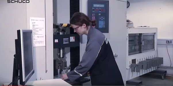Vlastní zkoušky komponentů a materiálů jsou u Schüco již tradicí. V roce 1967 byl zahájen zkušební provoz, v roce 1968 pak bylo od Technické univerzity v Berlíně zakoupeno první použité univerzální zkušební zařízení. V současnosti jsou - vedle statických a dynamických tlakových, ohýbacích a tahových zkoušek - prováděny také zkoušky mechanického chování tepelně oddělených profilů nosného rámu a křídla. Zkoušky se provádějí v uzavřené měřící místnosti, a to při pokojové teplotě a v teplotním rozsahu -20°C až + 80°C. Testováno je také stárnutí zkušebních těles za definovaného hmotnostního a teplotního vlivu v časovém intervalu až 1000 hodin.