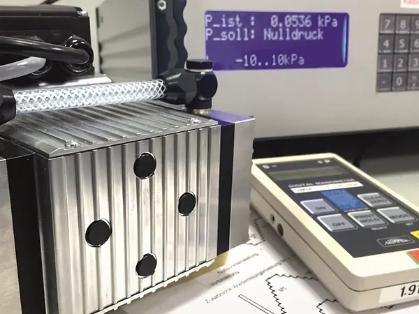 Většina kalibrací v rámci kontroly zkušebních prostředků se provádí v naší vlastní kalibrační laboratoři s akreditací DAkkS, která je schopna provádět jak precizní DAkkS-kalibrace, tak i tovární kalibrace, a to se sledovatelnými referenčními normály. Neboť díky kalibrační laboratoři s akreditací DAkkS je TC začleněno pod Fyzikálně technický spolkový institut, nejvyšší německý metrologický ústav. Kalibrace na nejvyšší úrovni je zde prováděna u elektrických měřících veličin (proud, napětí, odpor), mechanických měřících veličin (tlak), termodynamických měřících veličin (teplota, vlhkost) a průtokových měřících veličin (průtok vzduchu a vody).