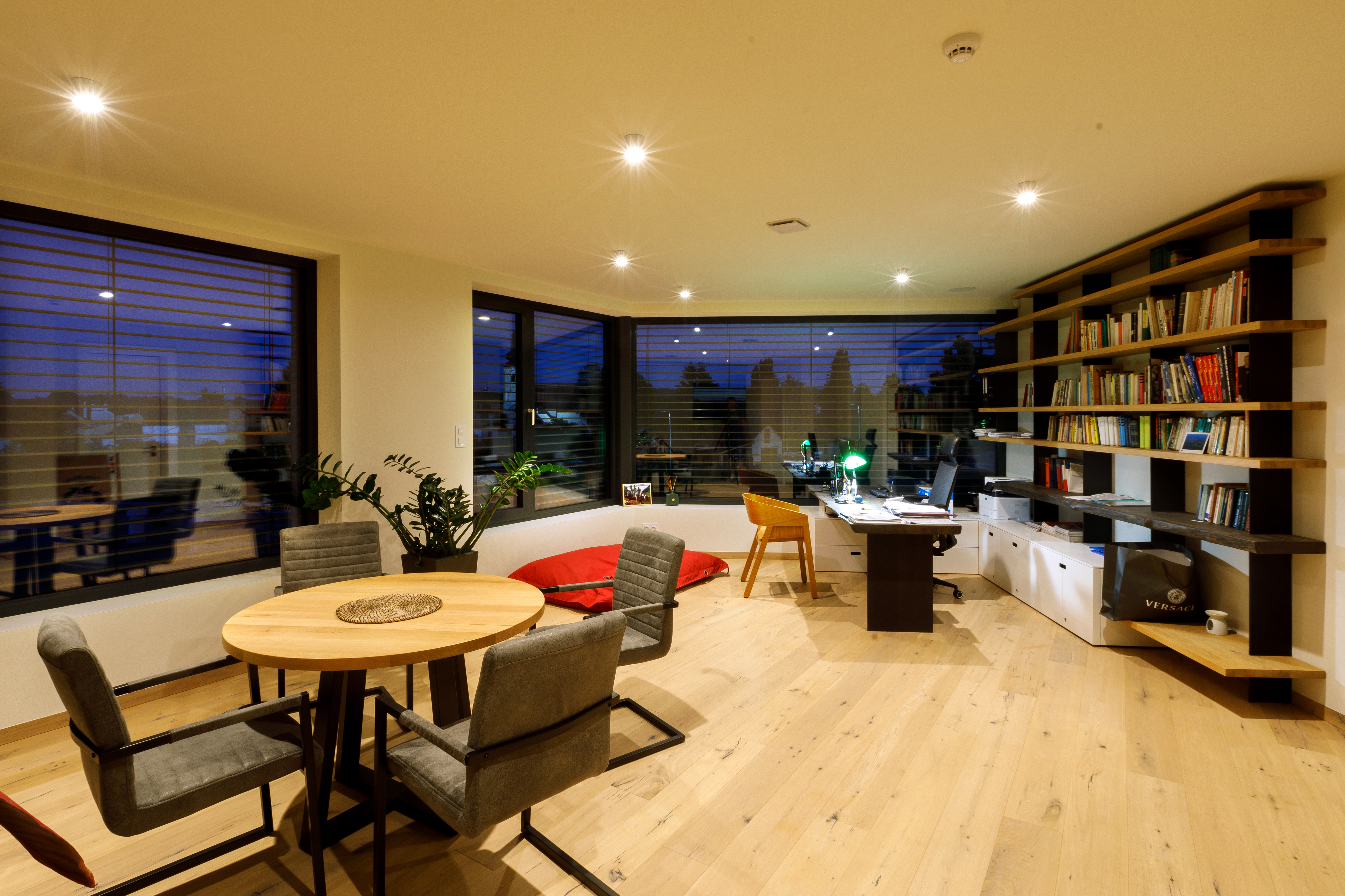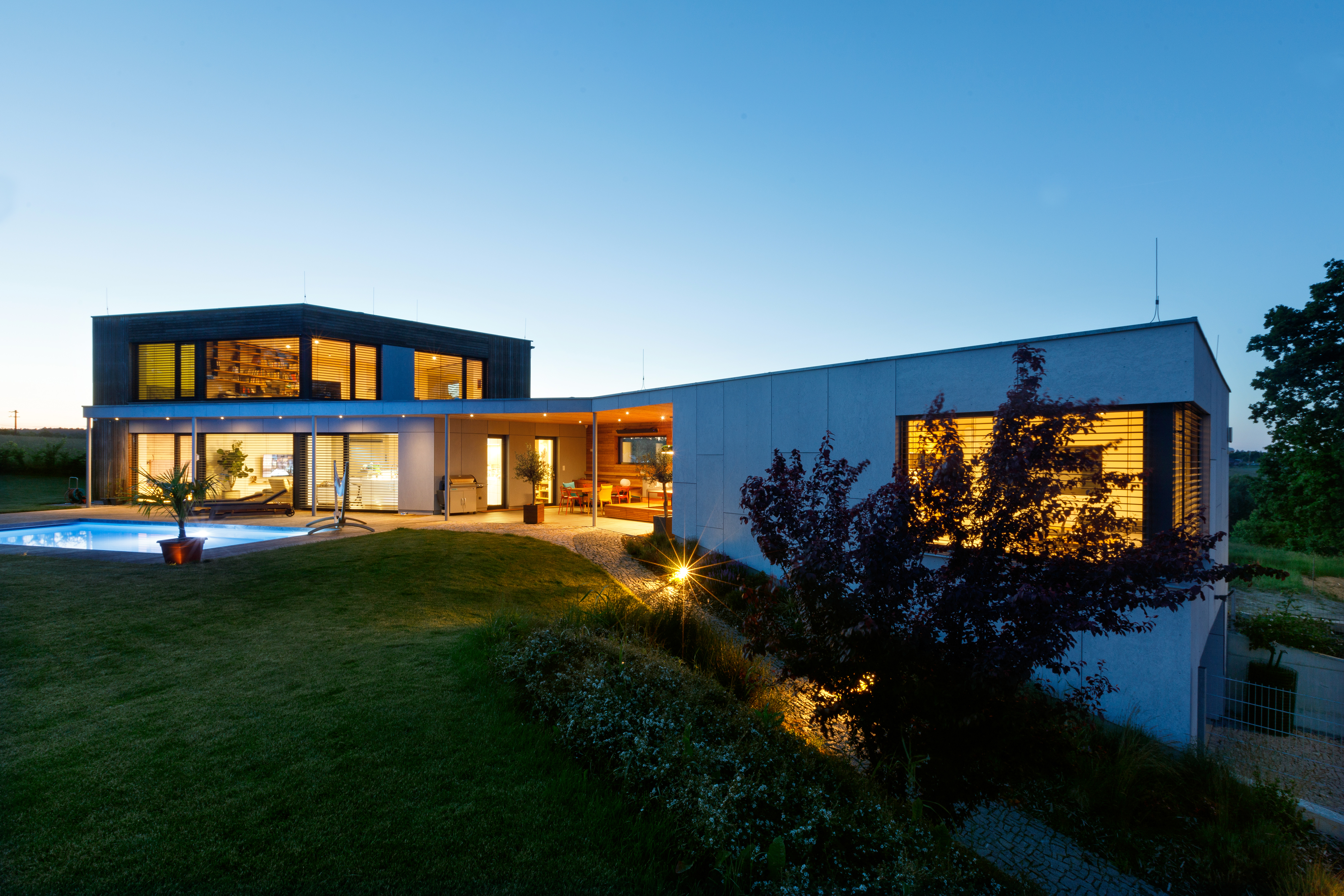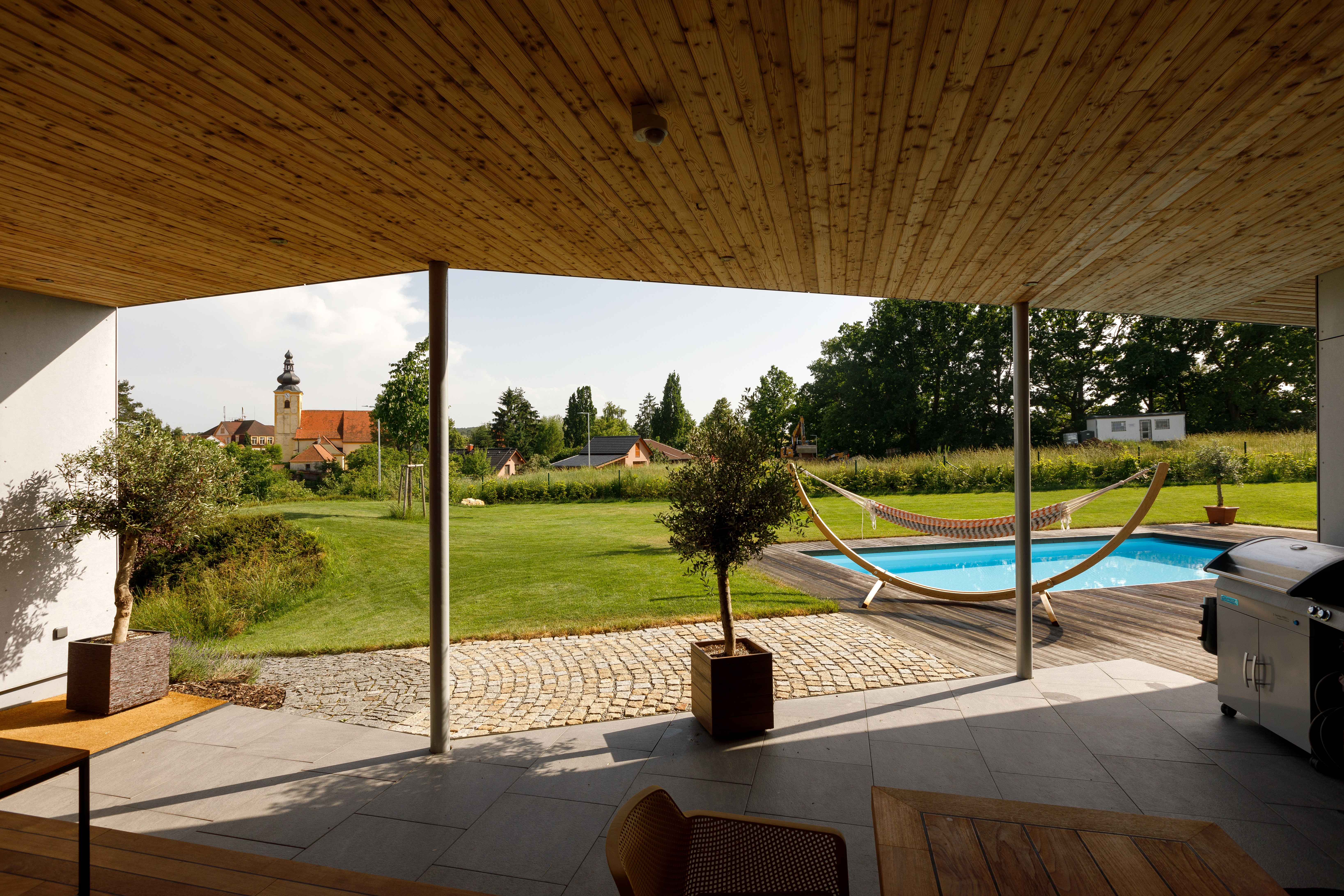Na počátku byl pozemek v jihočeských Ledenicích a investorovo soukromé výběrové řízení se třemi velmi odlišnými studiemi. Návrh cihlového a velkoryse proskleného domu od Ateliéru Vostracký zvítězil praktičností a dokonalým pochopením potřeb a přání budoucího majitele, včetně ladovského výhledu na kostelík s farou z rohové, impozantně prosklené pracovny v patře i z terasy v přízemí. Pán domu by ani po třech letech bydlení nic z původního návrhu neměnil, protože se mu zde žije a pracuje spokojeně – lépe, než je u prvních soukromých staveb běžné.