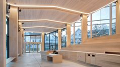 Mit dem Neubau »Bjergsted Finansparken« des Hauptsitzes der SpareBank im südnorwegischen Stavanger schufen Helen & Hard in Kooperation mit SAAHA einen spannenden Hybridbau und eine Ikone der zeitgenössischen Holzarchitektur. Das besondere Extra: Der konstruktiv maßgeblich aus Holz bestehende Bau wird von einer klassisch geometrischen Schüco Pfosten-Riegel-Glasfassade ummantelt, die das warme, organisch geformte Holzinnere des Komplexes kontrastiert.