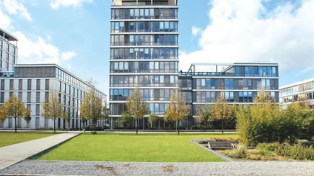 Das Bürogebäude MK 13 steht im seit 1989 neu entstandenen Quartier Parkstadt Schwabing. Noch vor wenigen Jahren Brachland, hat sich dieser neue Stadtteil mit einer Gesamtgrundstücksfläche von ca. 405.000 Quadratmeter zu einem lebhaften Büro- und Wohnviertel entwickelt. Für die Benennung der Straßen im neuen Viertel standen Künstler und Architekten des Bauhaus Pate: so liegt das Gebäude MK 13, auch Garden Office genannt, an der Ecke Georg-Muche- und Marcel-Breuer-Straße. Das Garden Office wurde als Hauptsitz für das international agierende Ingenieurbüro CBP WSP geplant, dessen fünf Geschäftsbereiche bisher auf vier Standorte innerhalb Münchens verteilt waren. CBP übernahm bei den Planungen für den Bürokomplex, der aus einem Hochhaus und einem Flachbau besteht, eine Doppelrolle: Als vom Bauherrn beauftragtes Planungs- und Beratungsbüro vertrat das Unternehmen als späterer Nutzer gleichzeitig seine eigenen Interessen. Das MK 13 wurde von den Architekten WEP Effinger Partner Architekten BDA mit großer gestalterischer Sorgfalt entworfen und hat eine funktional-technisch hohe Qualität. Der Bürokomplex ist von Weitem sichtbar und besticht durch den hohen Transparenzgrad der klar strukturierten Schüco PfostenRiegel-Fassade mit ihren schmalen Profilen. Horizontal wird die Fassade durch ein umlaufendes C-Profil gegliedert. Die Haustechnik ist ein hoch effizientes System, dessen Hauptmerkmal die Bauteiltemperierung ist.