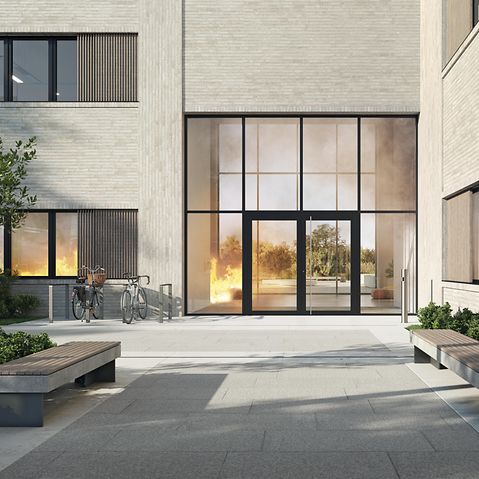 Fire and the associated smoke can pose a danger to life. It is therefore essential to be well protected against these dangers in buildings, too. We design and develop fire protection solutions for buildings across all products. Schüco provides fully tested system solutions for doors, façades, windows and partition walls, including fittings and glazing. These fulfil a wide range of fire and smoke protection requirements.