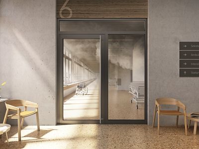 The Schüco FireStop ADS 76.NI SP non-insulated smoke protection door system, with its innovative open rebate single-chamber profile, is based on the Schüco FireStop platform, guaranteeing a high level of flexibility in planning and design.