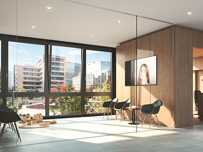 Schüco has met this challenge by developing an antimicrobial surface. Schüco SmartActive can therefore be used not only for handles but also for aluminium profiles. This means that the inside of windows, doors, sliding windows and façades can be provided with long-term antimicrobial protection. A wide range of powder coating colours provides freedom of design with a high level of protection.
