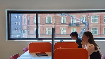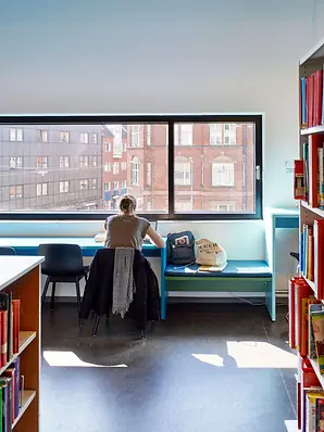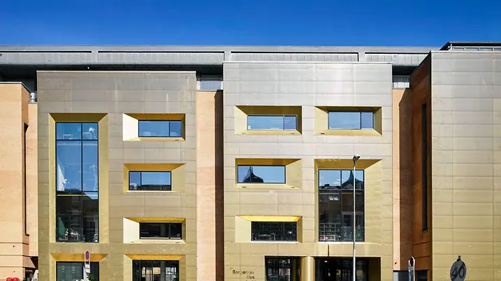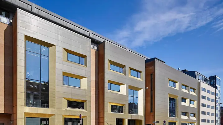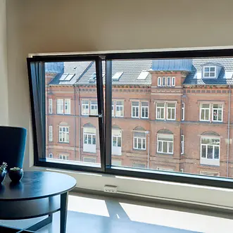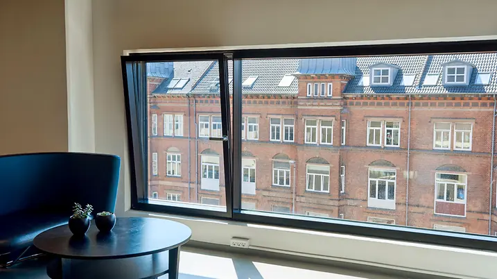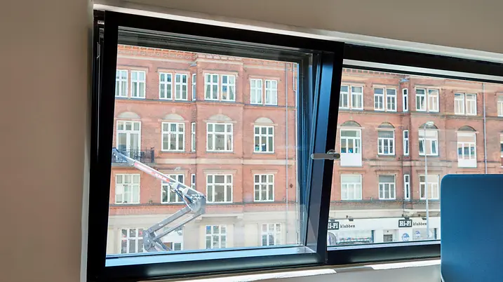 The Schüco FWS 60 CV (Concealed Vent) façade system harmoniously combines slimline face widths with a high degree of functionality and excellent thermal insulation. With a face width of just 60 mm, opening units and fixed fields are indistinguishable from the outside. On the flush, closed inside, only a slender shadow gap and the window handle betray the presence of the window vents.