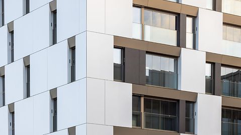 The Schüco AWS 120 CC.SI (Composite Construction Super Insulation) composite window system together with integrated Schüco CCB (Concealed Composite Blind) sun shading system is an optimised complete system for energy-efficient building envelopes. It offers passive house-certified thermal insulation and sun shading, glare protection and screening with clear views outside, all of which can be used in any weather. With a barely visible louvre blade stack when the Venetian blind is raised and no light penetrating at the sides when the Venetian blind is lowered, the complete package meets high design requirements with its internal and external appearance. A structural-glazing design is also possible.