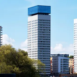 In the neighbourhood of Liljeholmskaje, Kajplats 6 towers above as a new landmark of Stockholm. The high-rise building that borders the waterfront comprises 26 storeys and a U-shaped city block that houses either six or seven floors. Designed by Ripellino Architects (now Reflex Architects), Kajplats 6 combines innovative façade technology with architectural freedom and urban presence, creating a modern high-rise building that masterfully intertwines light, material and visual connections.