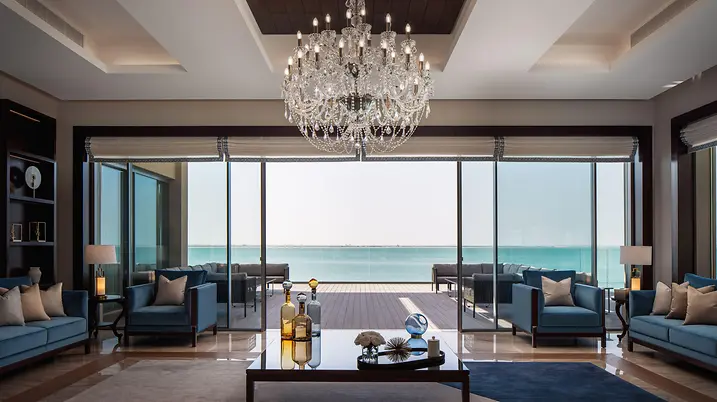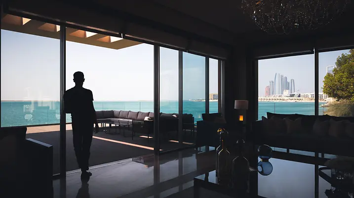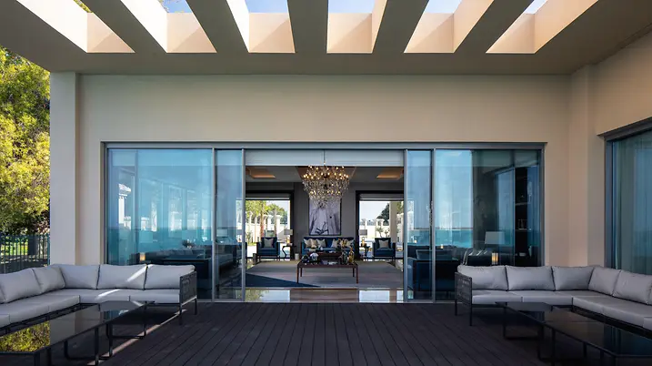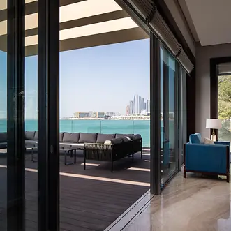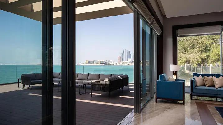 The Majlis private home in Abu Dhabi represents the perfect symbiosis of modern architecture and luxurious lifestyle. This property brings together sophisticated design and breathtaking views, accentuated by large Panorama Design sliding doors. In addition to the magnificent views of the sea and skyline, the sliding systems offer an almost seamless connection between indoors and outdoors, significantly expanding the living space.