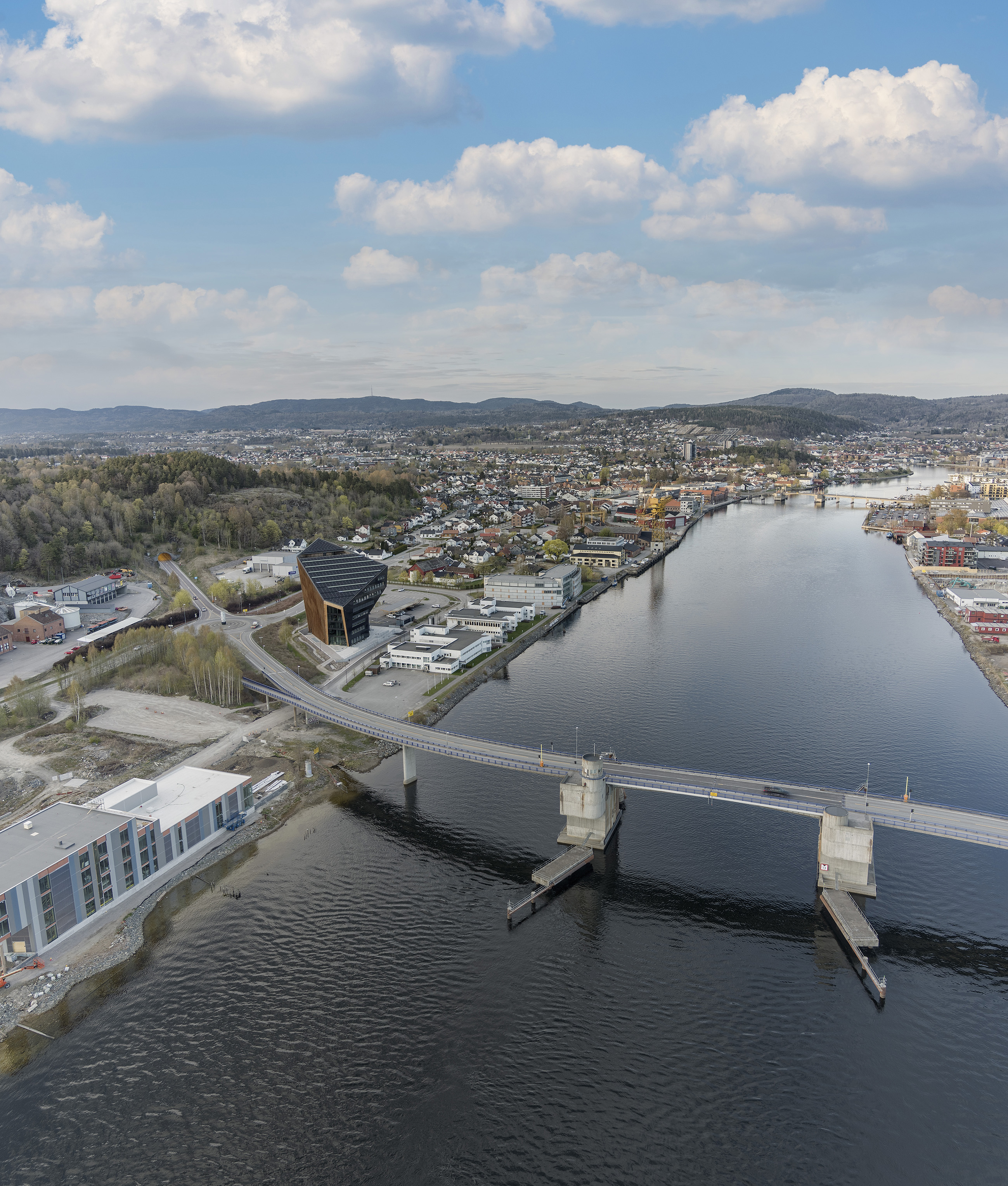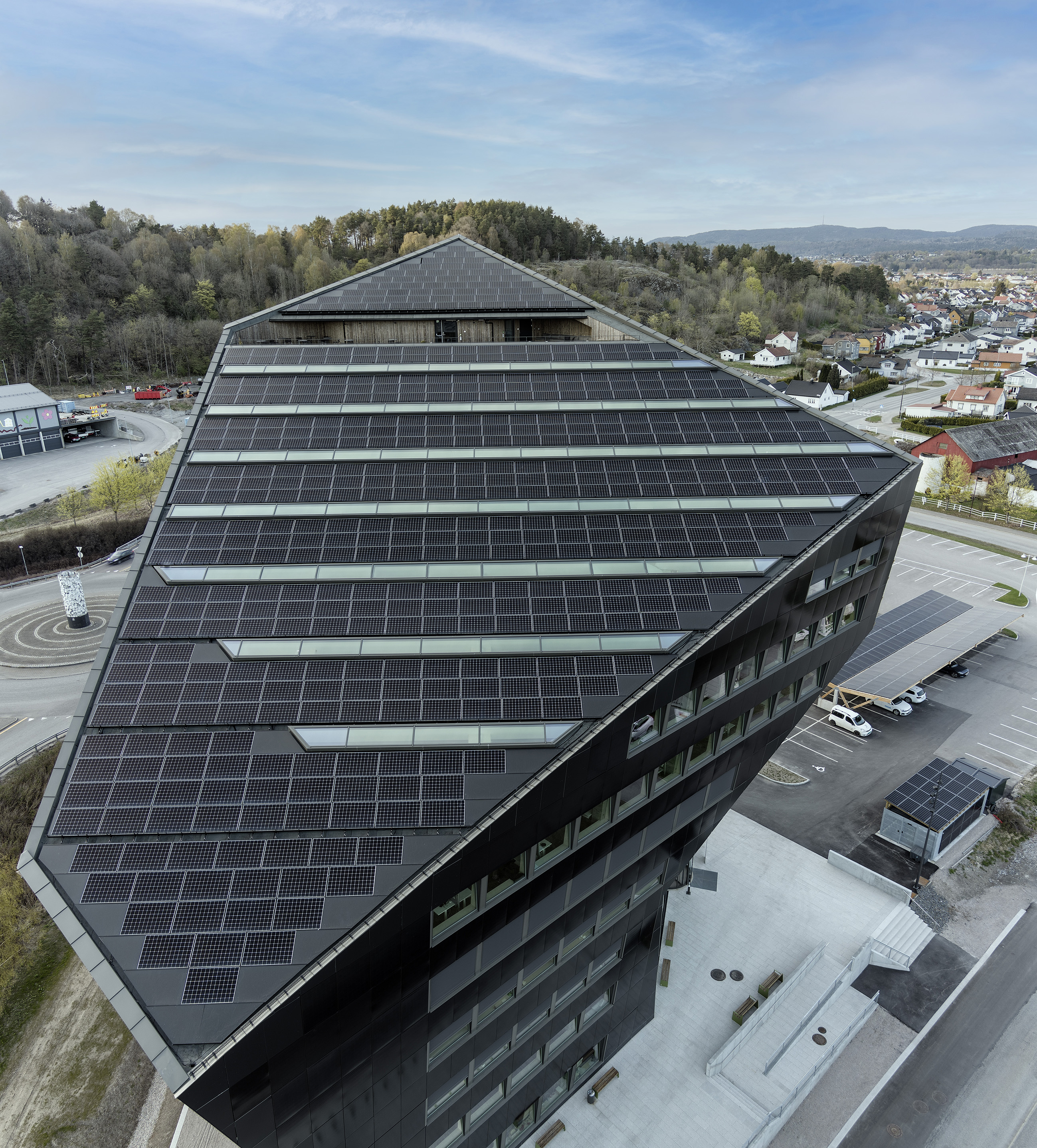 The Powerhouse Telemark is visible from well beyond the horizon of the industrial city of Porsgrunn.