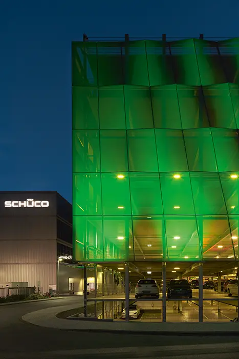 Bielefeld. The Schüco FACID textile façade with sophisticated system technology offers functional design freedom with practical benefits. The façade can be adapted and shaped to fit a wide variety of supporting surfaces. This results in unique designs that can be quickly implemented in a cost-effective way, even when the building is in use, thanks to the use of system profiles. One example of this is the new car park on the Schüco Campus in Bielefeld.