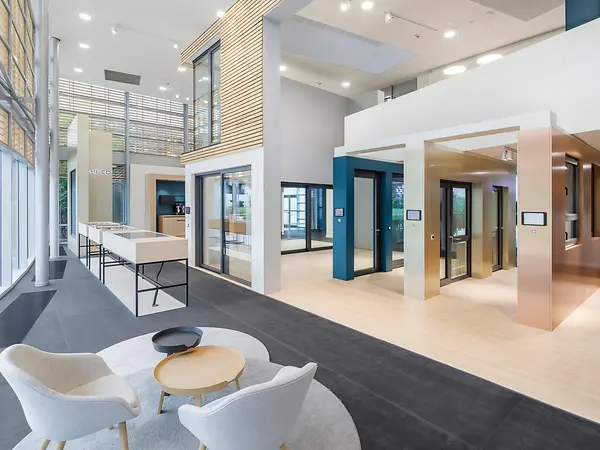 The newly renovated and refurbished showroom is located just outside Munich. Across an area of around 400 square metres you can find a wide range of large-scale exhibits with a focus on smart residential construction. If you're interested in smart building and barrier-free construction, then this is the place for you!But it's not just for end customers to come and obtain expert advice on site – architects and metal fabricators can also come alone or with their customers to find out information and exchange ideas for planning.