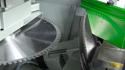 Schüco compound-mitre and notching saws are generally used for metal materials – aluminium in particular is the staple material of Schüco customers.