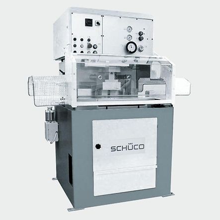 - Profiles can be clamped easily and without deformation and the spraying device moistens the saw blade with environmentally friendly oil so that no coolant runs out.
