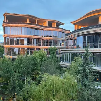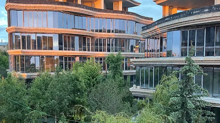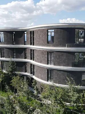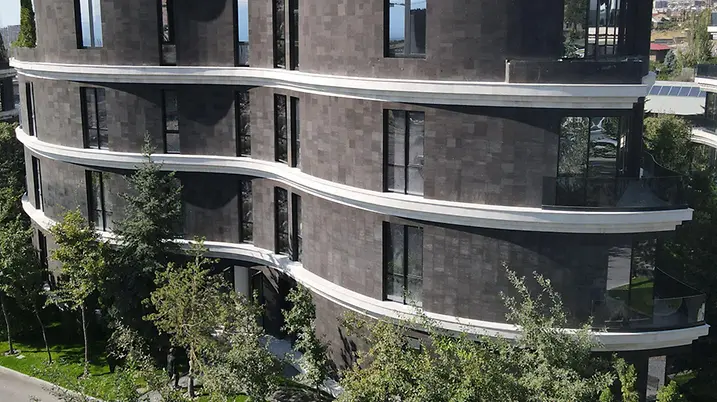 Situated just 2.5 km from the centre of the Armenian capital city of Yerevan, Amanoo is a green sanctuary with breathtaking views of the city. This view is made possible, among other things, by the folding sliding doors that open the living spaces completely to the outside.