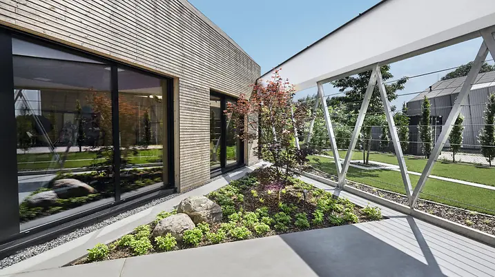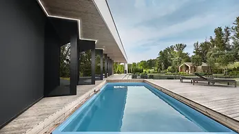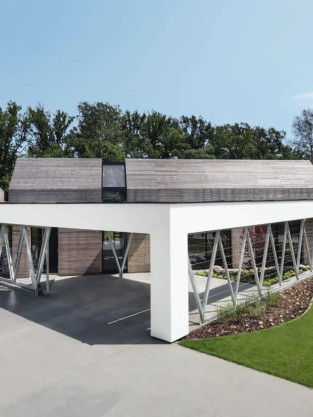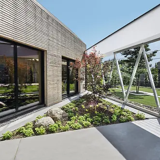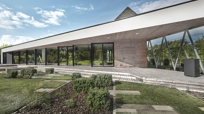 The Triangle House makes optimal use of the trapezoidal site for an extraordinary architectural concept. The windows and sliding doors are especially noteworthy, arranged at precise angles to provide the most impressive views of the plot. Positioned facing the west and south, the property offers impressive panoramic views and generous amounts of natural light.