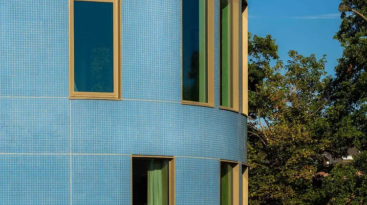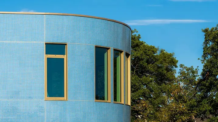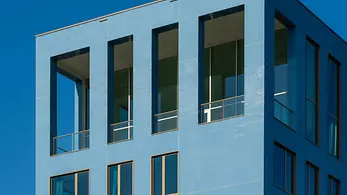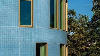 The Schüco AWS 120 CC.SI (Composite Construction Super Insulation) composite window system together with integrated Schüco CCB (Concealed Composite Blind) sun shading system is an optimised complete system for energy-efficient building envelopes. It offers passive house-certified thermal insulation and sun shading, glare protection and screening with clear views outside, all of which can be used in any weather. With a barely visible louvre blade stack when the Venetian blind is raised and no light penetrating at the sides when the Venetian blind is lowered, the complete package meets high design requirements with its internal and external appearance. A structural-glazing design is also possible.