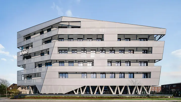 Situated at the heart of Bielefeld, Lenkwerk No. 1 is an office building that enriches the city centre with its unique architecture and innovative sustainability concepts. Featuring futuristic shapes and an energy-efficient façade, the design not only marks an architectural milestone but also sets new standards in resource-conserving construction.