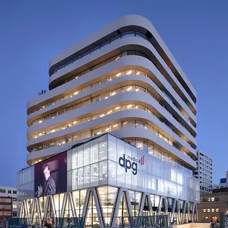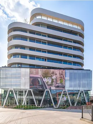 The new headquarters of DPG Media is revitalising Antwerp's Kievitplein. The building designed by BINST ARCHITECTS is intended to be an iconic, interactive media temple and acts as an architectural catalyst for revitalising the station quarter. Thanks to its carefully-designed structure, it could easily be converted into living space at a later date. The generous glass volumes from Schüco characterise the transparent properties of the office building.