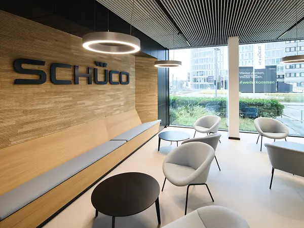 As soon as the decision was made to renovate the façade, Schüco was determined to make recycling a priority. The existing façade of the complex from the 1980s and 2000s contained a large amount of aluminium. Schüco is also a founding member of the A|U|F, an association which organises a closed-loop recycling process for aluminium from the window, door and façade industry. It was natural, then, to dismantle all of the aluminium components from the façade and canopy, and feed them back into the A|U|F raw material cycle. In order to ensure that only aluminium was fed into the cycle, the company in charge of demolition collected the individual constituent materials in separate containers as much as possible. The aluminium was then recycled in several container loads by companies belonging to the A|U|F. In total, 28 tonnes of the material were extracted from the building, which was confirmed by European Aluminium (EA) following an external audit, which confirmed a recycling rate of 98.3%.