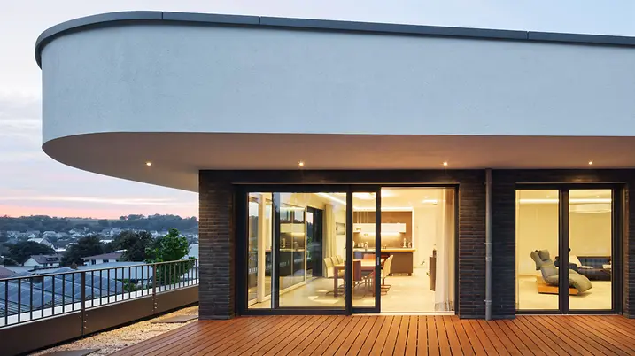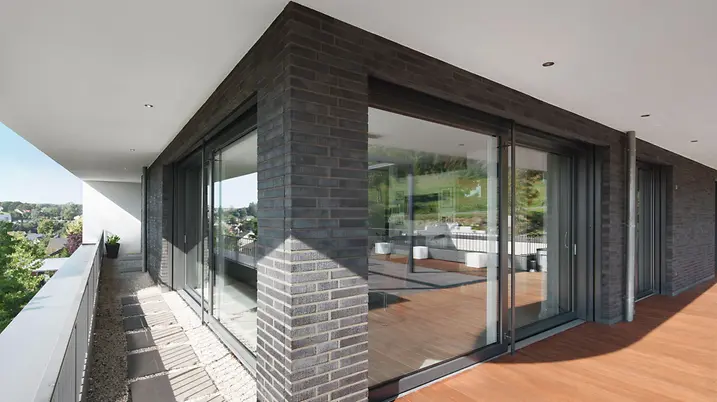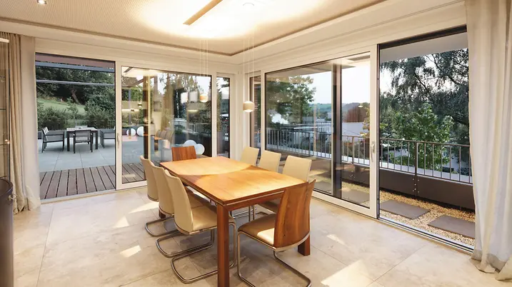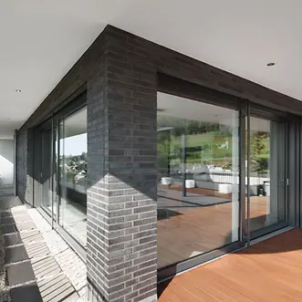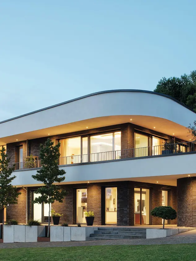 To create a building of remarkable transparency, Adomako Architekten consistently implemented contrasts of open and closed surfaces and of smooth light and structured dark materials in the construction of a detached house in the district of Paderborn. Large areas of glazed and highly thermally insulated PVC-U window and sliding door systems from Schüco help to create a uniform façade appearance while providing individual functionality and a lasting high level of protection against draughts, cold, moisture and noise.