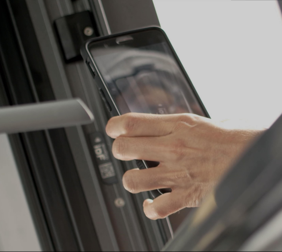 Every journey, every vision begins with the first step. For the Internet of Façades, the first step is the IoF ID. This is a small tag which gives every façade unit in a building its own digital identity. All of the data, information and documents relating to the unit are stored there and will be available throughout the duration of the unit's useful life. That is not just the first important step towards creating a digital building envelope, it also makes the day-to-day work of Schüco partners much easier.
