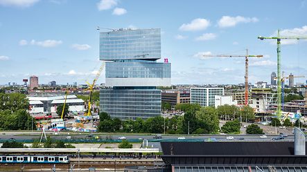 Mit dem 91 Meter hohen Hotel nhow Amsterdam RAI hat das dynamische Geschäftsviertel Amsterdam-Zuidas eine neue Landmarke erhalten. Der nach Plänen von OMA errichtete Neubau setzt sich zusammen aus drei spektakulär übereinander gestapelten Volumen, die sich dynamisch von der umgebenden Bebauung absetzen. Hinter der streng gerasterten Fassade aus Stahl und Glas stellt das größte Hotel in den Niederlanden insgesamt 650 Zimmer zur Verfügung.