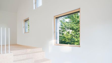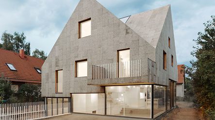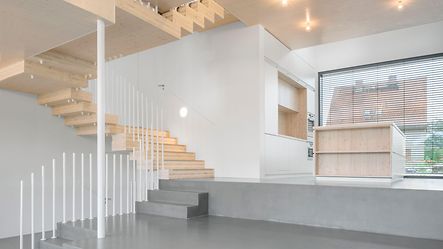 Nicht nur die von den "rundzwei" Architekten verwendeten Materialien sind eine Besonderheit des Hauses. Auch die Aufteilung der Gebäudeebenen sind alles andere als Standard. Aus gutem Grund, denn baurechtlich ist auf dem Grundstück nur ein Vollgeschoss erlaubt. Durch das Absenken des Gebäudesockels und dessen Nutzung als Wohnraum, in Kombination mit einer Staffelung der Flächen im Obergeschoss, gelingt dem Architekten-Team eine Maximierung der Bruttogeschossfläche auf 320 m².