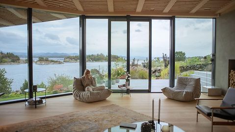 Auf die Frage, was sie in ihrem Zuhause am meisten genießt, sagt Bauherrin Merete: „Das Licht, das wechselhafte Wetter, mit den Jahreszeiten zu wohnen. Aufzuwachen und aufs Meer zu schauen, es draußen stürmen und regnen zu hören, aus dem Regen hereinzukommen, die Tür hinter mir zu schließen und zu sagen: Endlich wieder Zuhause.“