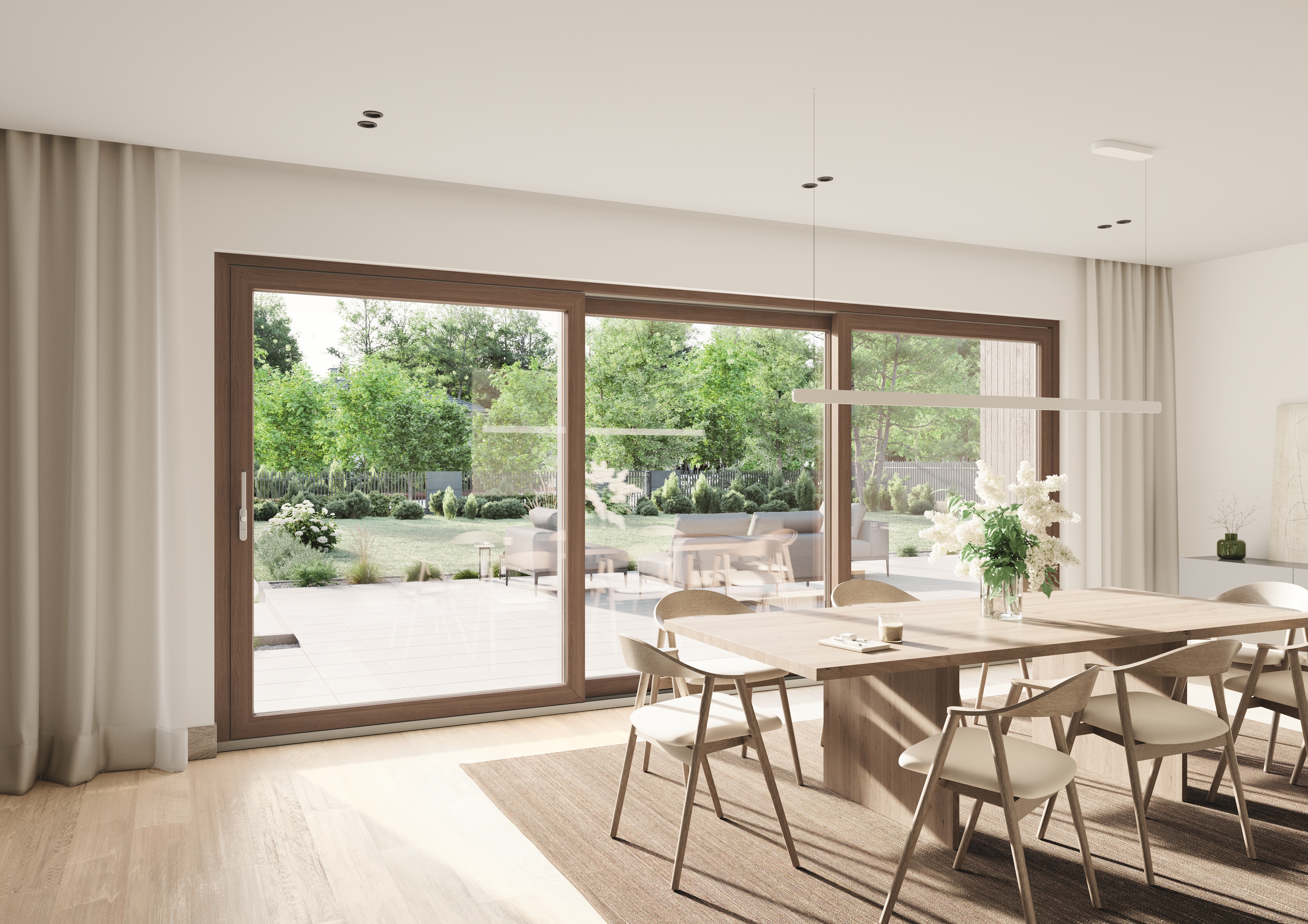 Ob urbaner Rückzugsort, Landhaus im Grünen oder idyllisches Vorstadthaus: Folierungen von edler Aluminiumoptik bis zur täuschend echten Holzmaserung sorgen für eine harmonische Integration in diverse Designkonzepte.