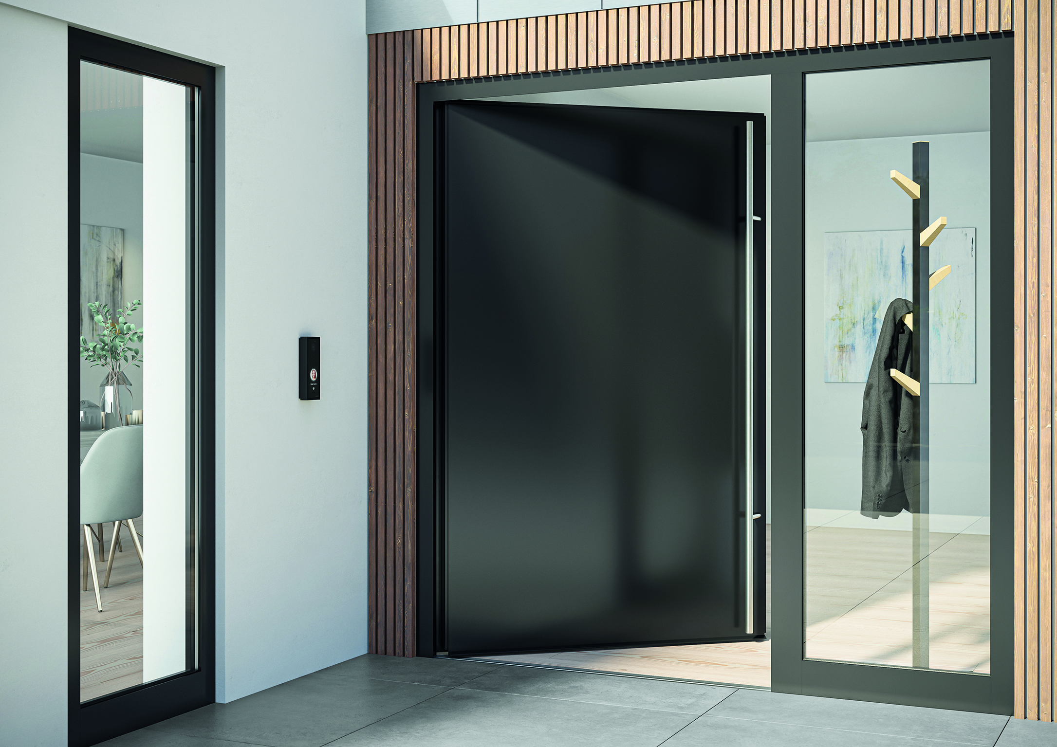 Die Nullschwelle des Türsystems Schüco AD UP vereint barrierefreien Komfort mit den klassischen Anforderungen einer Haustür wie Schlagregendichtheit oder Luftdurchlässigkeit auf höchstem Niveau.