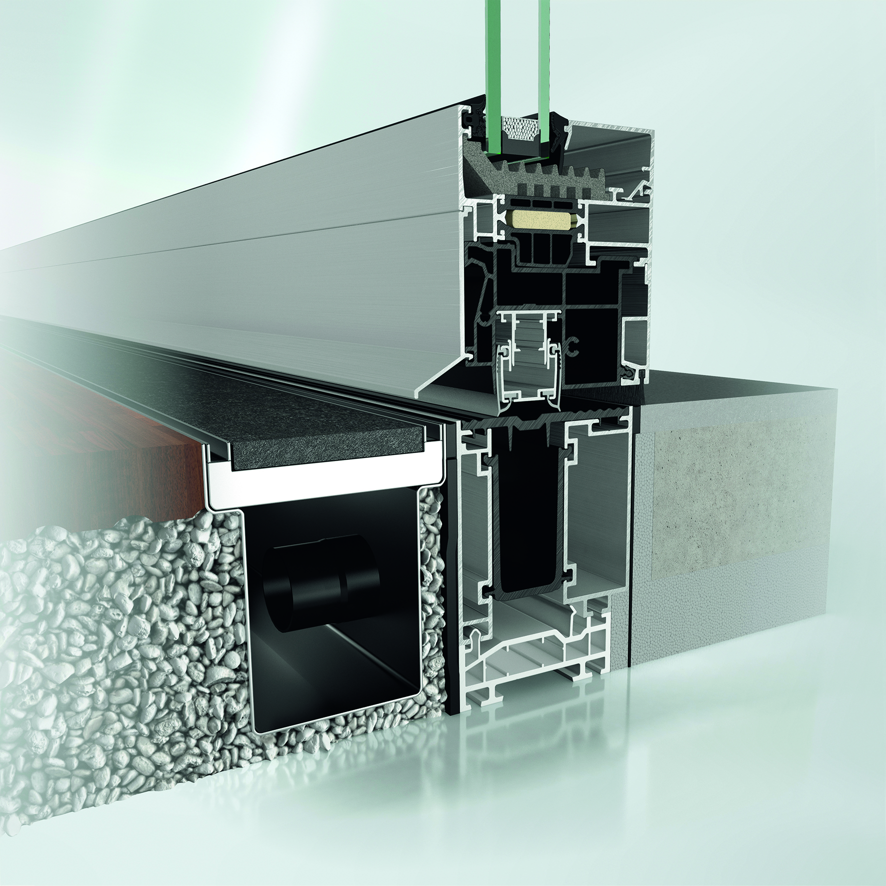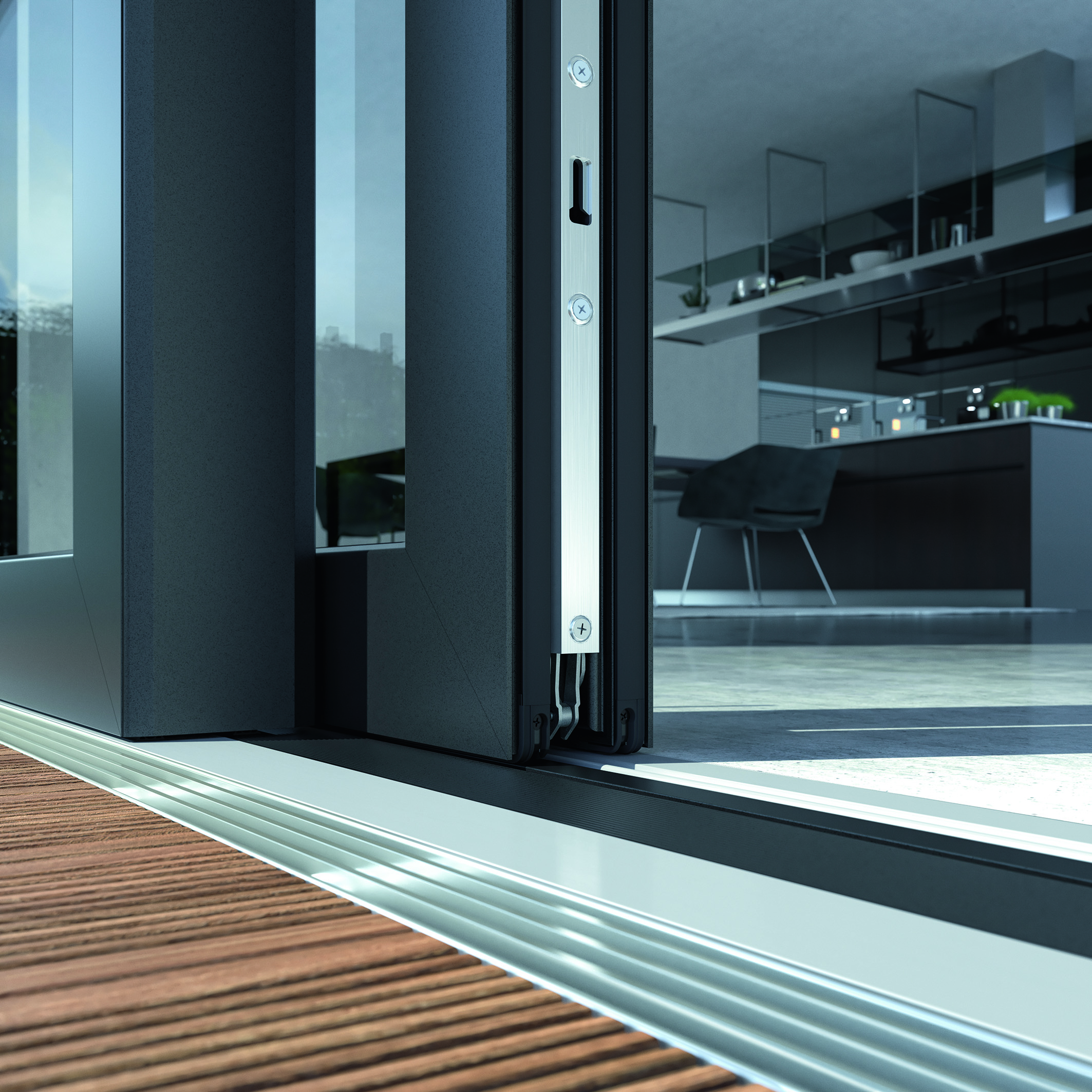 Auch klassische Anforderungen wie eine effektive Wärmedämmung und eine Einbruchsicherheit bis RC 2 können in Kombination mit der Nullschwelle bei dem Schiebesystem Schüco ASE 80.HI realisiert werden.