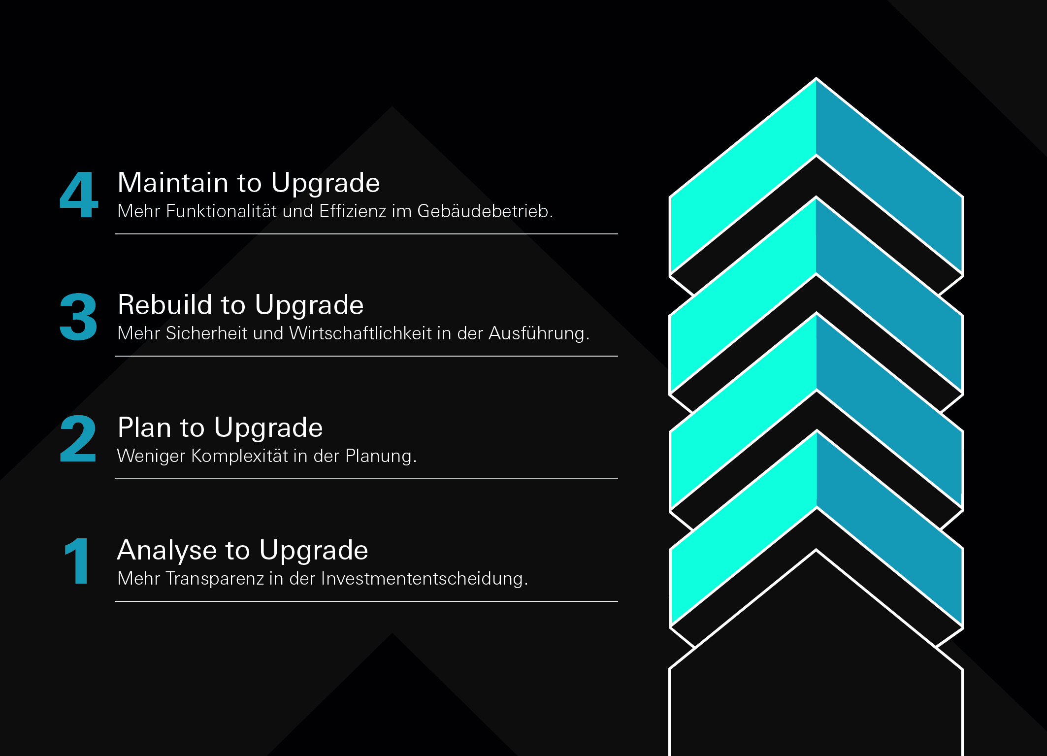 Schüco Value Up ist ein in vier Phasen strukturiertes modulares Angebot von Produkten und Services für einen wertsteigernden Sanierungsprozess.