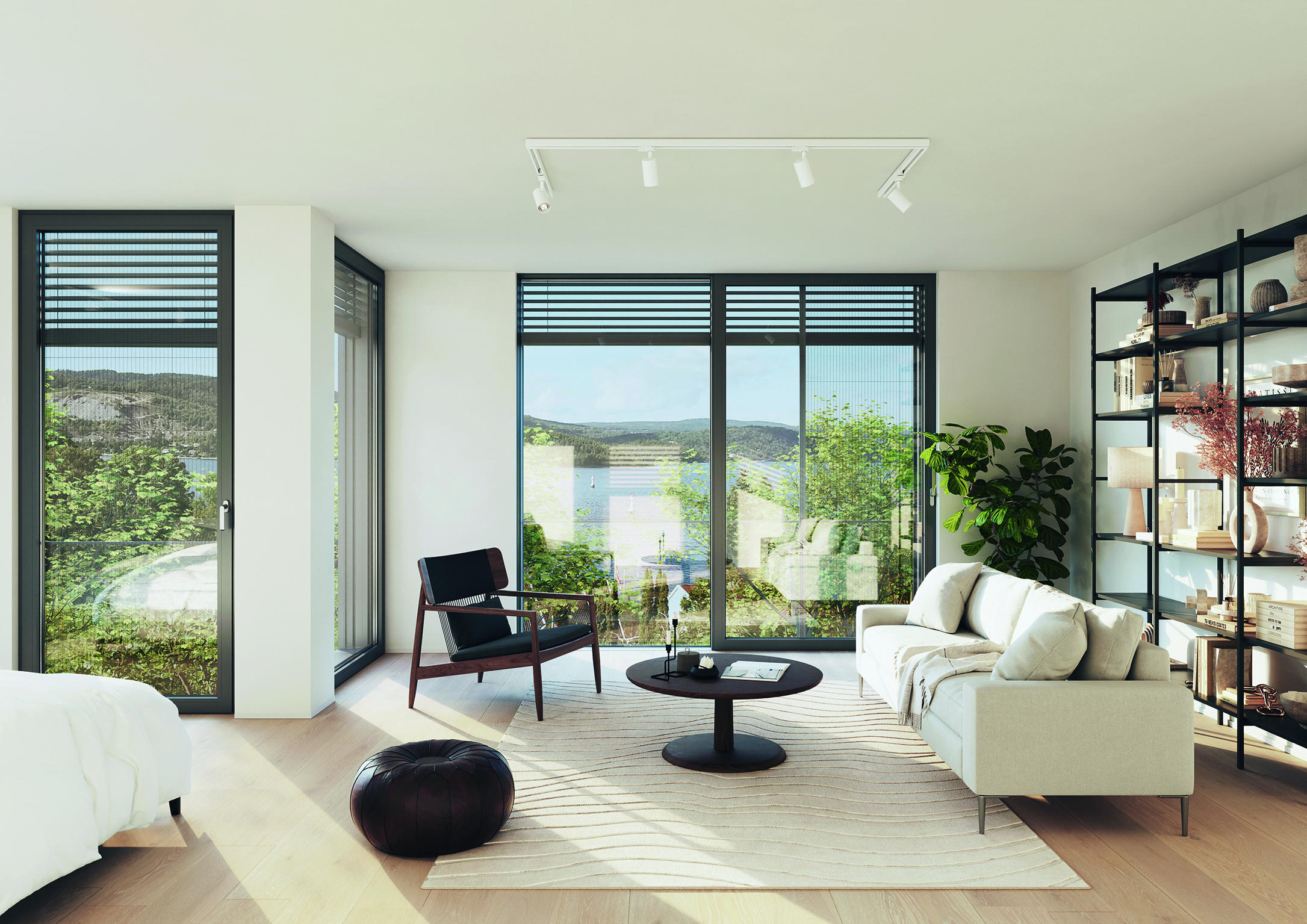 Mit Schüco Perfect sind Sonnenschutz, Insektenschutz, Designfensterbank oder Absturzsicherung gewerkeübergreifend in einem System vereint.