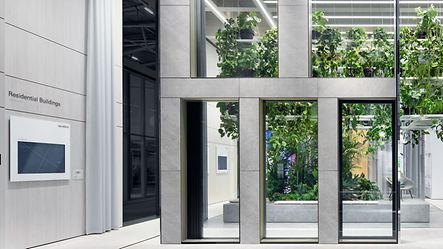Commercial heißt auch, weiter in die Höhe zu bauen. Für Schüco ist es ein wichtiger strategischer Ansatz, sich dem wachsenden Marktsegement High-Rise zu widmen: Die Elementfassade UDC 80 bietet die gewohnte Schüco Systemsicherheit, wobei die einzelnen Elemente in der Werkstatt vorbereitet und vor Ort nur noch eingehängt werden. Lüftungslösungen, Sonnenschutz und Schallschutz lassen sich entsprechend den individuellen Anforderungen integrieren. Übrigens können die Bauherren den optischen Stil der Fassade über die entsprechende Verkleidung frei wählen – natürlicher Stein, Blech oder futuristisch aussehendes Glas. Dabei ist Fassade heutzutage natürlich mehr als Optik. Mechatronische Elemente lassen sich über Schüco Building Skin Control (BSC) miteinander vernetzen und steuern, über eine App auch aus der Entfernung.