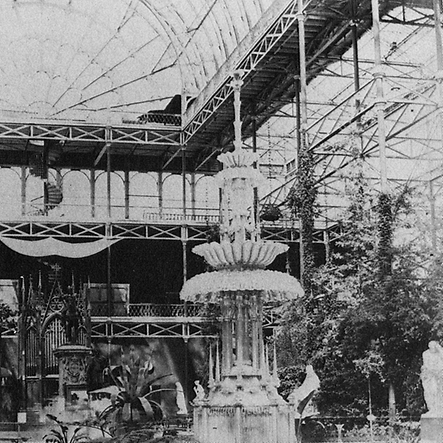 Als Höhepunkt dieser neuen Typologie, in der sich Konstruktion, Form und gestalterischer Anspruch virtuos vereinen, gilt der Kristallpalast in London anlässlich der Weltausstellung von 1851. Kein Architekt oder Ingenieur war für den Entwurf und die Umsetzung verantwortlich, sondern der britische Gärtner Joseph Paxton, der schon geraume Zeit mit Eisen-Glas-Konstruktionen für seine Gewächshäuser experimentierte. Leicht und grazil sitzt die mächtige Konstruktion aus Eisen, Glas und Holz mit über drei Geschossen im Hyde Park. Modular aus vorgefertigten Eisenteilen und Glassegmenten hergestellt und in kurzer Bauzeit errichtet und wieder demontierbar, steht dieser Bau stellvertretend für den Beginn der Glas-Stahl-Architektur moderner Hochhauskonstruktionen. Als „die Verwirklichung eines neuen Baugedankens, für den es kein Vorbild gab“, hebt Sigfried Giedion in seinem Buch „Space, Time and Architecture – The Growth of A New Tradition“ die Sonderstellung dieses Bauwerks hervor.