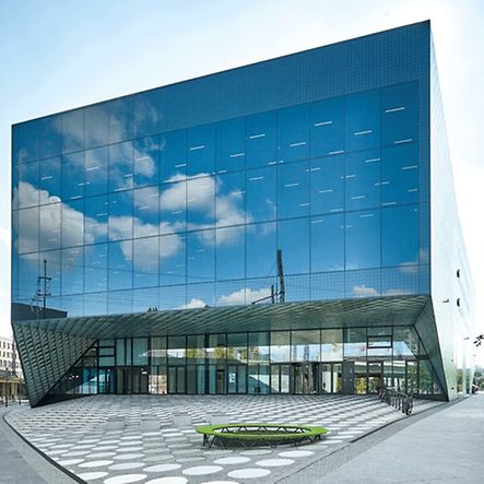 Transparent und schwerelos wirkt auch der neue Hauptbahnhof von Arnheim. Inspiriert von der hügeligen Landschaft um die niederländische Großstadt entwickelten die Architekten ein organisches Gebäude in Anlehnung an das Prinzip der Kleinschen Flasche, bei dem innen und außen unmerklich ineinander übergehen. Mit Höhen von bis zu sechs und Längen bis zu 25 Metern ließen sich die geschwungenen Glasfassaden enormen Formats nur als Stahlkonstruktion freitragend realisieren.