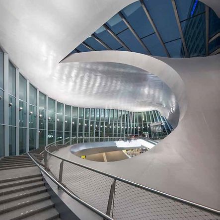 Große Herausforderungen stellen sich auch heutzutage bei der Planung und Realisierung von großformatigen Fassadenflächen. Der Spagat zwischen den gestalterischen Anforderungen an maximale Scheibenformate und eine minimierte Tragstruktur und der Erfüllung der baulichen Anforderungen an Schallschutz, Wärmeschutz, Sonnenschutz, Verdunklung, Windlast, Brandschutz und Absturzsicherheit erfordert Teamwork zwischen den am Bau Beteiligten. Für das Projekt Futurium kam eine Sonderlösung als Stahl-Glaskonstruktion zum Einsatz, die nur mit Stahlprofilen, die das System der statischen Lastabtragung umkehren, umsetzbar ist.