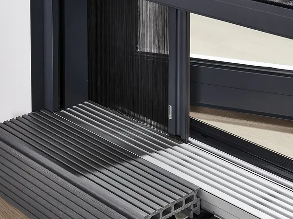 Für eine individuelle Gestaltung stehen eine Reihe beliebter Zusatzkomponenten wie z. B. Absturzsicherung, Sonnen- und Insektenschutz zur Verfügung. Wählen und kombinieren Sie diese Add-ons, um Schüco Perfect genau an die Anforderungen Ihres Bauprojekts anzupassen. Oberflächenstruktur und Farbgebung der einzelnen Elemente sind identisch, was für eine homogene und stilvolle Optik sorgt.