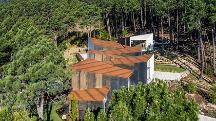 Das Erdgeschoss – zugleich der Hauptwohnbereich – wird durch den Eingang in eine Tages- und eine Nachtzone unterteilt: Der Nachtbereich verfügt über vier Schlafzimmer. Die Tageszone beherbergt die Küche, den Wohn- und Essbereich sowie die Bibliothek, die am höchsten Punkt des Gebäudes liegt. Neben der Waschküche und den Hauswirtschaftsräumen befinden sich im unteren Geschoss des Gebäudes ein Büro, ein Spielzimmer, eine Werkstatt und ein Gästezimmer mit Bad. Durch die besondere Komposition und die Einbettung der Wohnwürfel entlang des Hangs können Hausbewohner und Gäste selbst hier, im eigentlichen Souterrain, die schönen Ausblicke in alle Richtungen genießen.