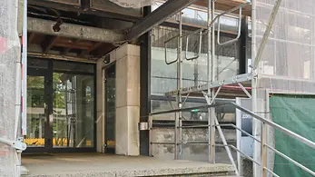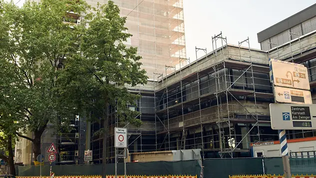 Die Gebäudehülle des Hochhauses aus den 1970er-Jahren war nach heutigen Ansprüchen energetisch unzureichend. „Ein zentrales Ziel der Revitalisierung war es daher, das nahezu ungedämmte Gebäude grundlegend zu modernisieren“, berichtet Architekt Frank H. Stopfel. Die 15 Wohneinheiten sollen den Energiestandard KfW-Effizienzhaus 70 erhalten, für die Büroflächen ist die Stufe KfW-Effizienzhaus 55 geplant. Das bedeutet, dass nur 55 Prozent der Primärenergie im Vergleich zum GEG-Referenzgebäude benötigt werden. „Entsprechende Zuschüsse wurden bereits bewilligt“, so der Architekt. „Das war ein zeitintensiver Prozess, bei dem wir Kosten und Machbarkeit sehr genau geprüft haben.“ Neben der Fassade leisten die neuen Schüco Fenster mit einem U-Wert von 0,77 W/(m²K) einen großen Beitrag zur Verbesserung der Energieeffizienz. Davon profitiert auch das Äußere. Die Fassade wird klar strukturiert und erhält ein geradliniges Erscheinungsbild. Rötlich graue Tonziegel im Bereich der Brüstung, in die dunkelgraue Aluminium-Fenster integriert werden, definieren zukünftig den Charakter des Gebäudes.